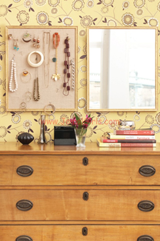 احضري لوح خشبي وثبتيه بمسامير ملونة واحضري اكسسواراتك وعلقيها عليه بطريقة انيقة ومرتبه ..