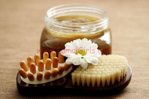 يتم خلط السكر مع زيت الزيتون بنسب متساوية 1 : 1 بعد ذلك توضع على البشرة مع التدليك المستمر ويعمل هذا القناع على التخلص من الخلايا الميتة وإعطاء لمسة مخملية على البشرة